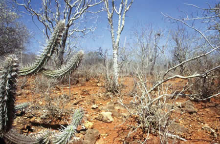No Brasil, as áreas desérticas são caracterizadas principalmente pelo bioma da Caatinga, o qual ocupa aproximadamente 12% do território nacional. Neste ambiente de vegetação densa e espinhosa, o sol é causticaste, o relevo é pouco ondulado e o solo muitas vezes pedregoso. Possui aglomerados humanos esparsos e uma grande escassez de água.